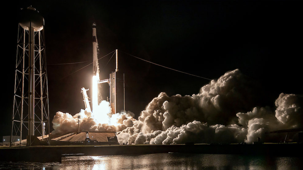 Oppskytingen av Crew-2 fant sted før soloppgang fra oppskytingsrampe 39A på Kennedy-romsenteret 23. april. (SpaceX)