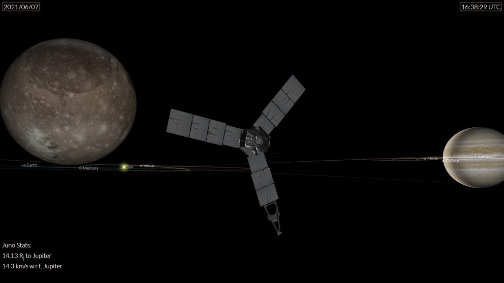Juno ble skutt opp i 2011. Av forskjellige grunner har sonden vart mye lenger i kretsløp rundt Jupiter enn først forventet. Siden banemekanikkens lover flytter perijove (punktet i Junos bane nærmest Jupiter) et lite hakk nordover for hvert omløp, krysset etter hvert Juno Jupiters ekvatorplan, som de Galileiske månene kretser i, nær banen til Ganymede. Dette benyttet man seg altså av nå, til å få gjort nærobservasjoner av månen. Ganymedes gravitasjon sørget da også for å redusere Junos omløpstid rundt Jupiter fra 53 til 43 dager.