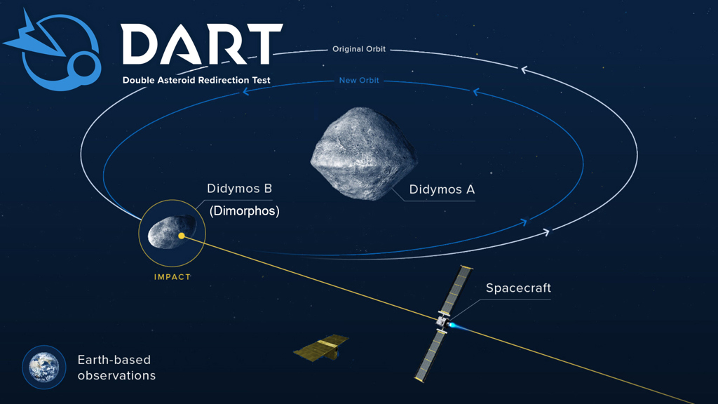 Det sikreste kortet i september er nok asteroide-sonden DART (Double Asteroid Redirection Test), siden den allerede er skutt opp. DART skal kollidere med månen til asteroiden Didymos den 26. september 2022 i den hensikt å få undersøkt i hvilken grad en slik metode kan benyttes til å endre en asteroides bane. DART har en masse på 610 kg og månen (Dimorphos) en masse på 4,8 milliarder kg. Planen er å måle effekten av kollisjonen ved å registrere endringen i månens omløpstid om moderasteroiden. Vi har en detaljert omtale av DART i eRomfart 2021-039.