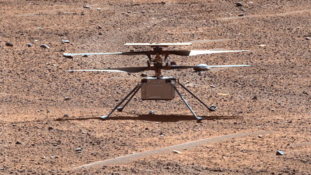 Skyggen av det ødelagte rotorbladet til Ingenuity