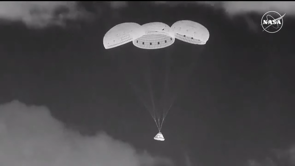 Bildet over: Infrarødt bilde av Starliner på vei ned under avslutningen av Crew Flight Test.